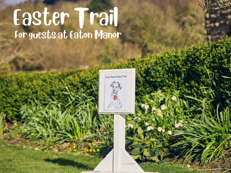 This Easter, children staying in our holiday cottages can enjoy our brand‑new Easter Trail around the estate to find Moose, the Eaton Manor dog & WIN an Easter Egg.